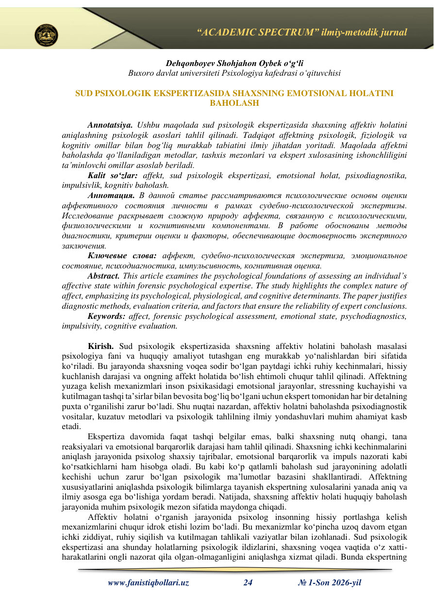 SUD PSIXOLOGIK EKSPERTIZASIDA SHAXSNING EMOTSIONAL HOLATINI BAHOLASH